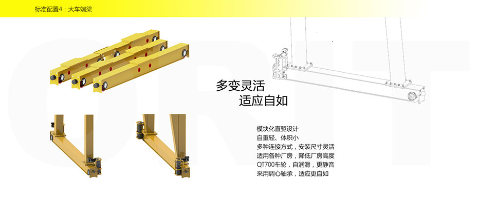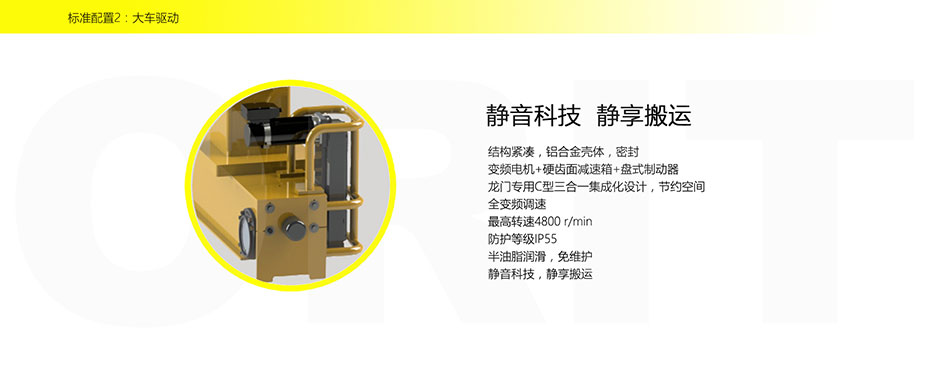 小巧玲瓏節(jié)省空間。優(yōu)化設(shè)計(jì),結(jié)構(gòu)緊湊。柔性支腿,有效釋放應(yīng)力,延長結(jié)構(gòu)壽命。柔性支腿,讓龍門小巧玲瓏,節(jié)省空間。變頻控制,運(yùn)行平穩(wěn)實(shí)時(shí)安全監(jiān)控,確保吊運(yùn)安全。標(biāo)準(zhǔn)化統(tǒng)一配置,讓整機(jī)性能更加穩(wěn)定。無牛腿車間的搬運(yùn)解決方案。適用于20t以下額定載荷起吊。